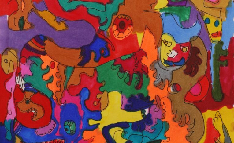 In de eerste twee maanden in het atelier wilde hij het liefst met waterverf werken. Alleen hier durfde hij toch niet goed mee aan de slag. Daarna begon hij tekeningetjes te maken op een klein oppervlak, in een schetsboek. Dit bleek voor hem het ideale medium.